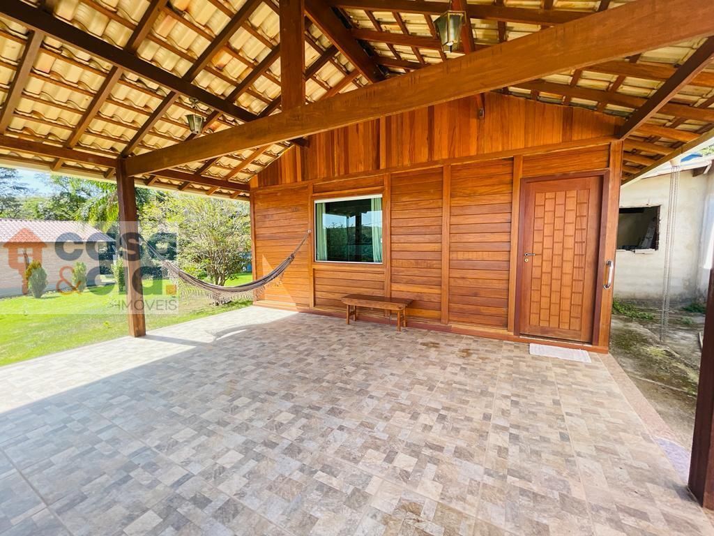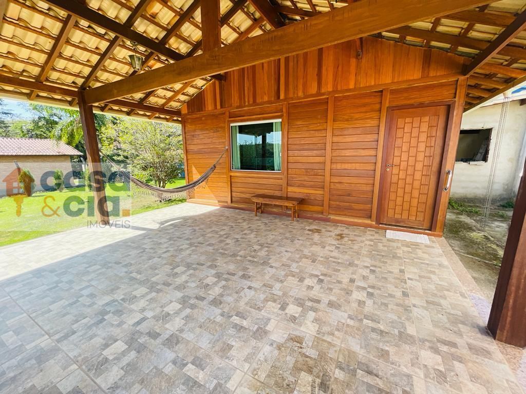 Casa toda composta por madeira de lei,e bem tratada.e pisos em porcelanato2 quartos amplos e aconchegantes,com uma vista linda para o quintal.sala ampla e arejada conjugada com copa,banheiro todo revestido em cerâmica, com box e um armarinho.garagem coberta para mais de 2 carros.condomínio todo arborizado,composto por 7 lagoas,com pista de caminhada.portaria 24 horas e ronda motorizada.o conforto e tranquilidade que vc e sua família precisam.